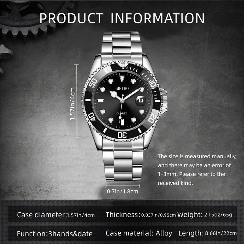 1pc Luxury Men Silver Stainless Steel Water Proof Automatic Luminous Rotatable Bezel Mens Watches