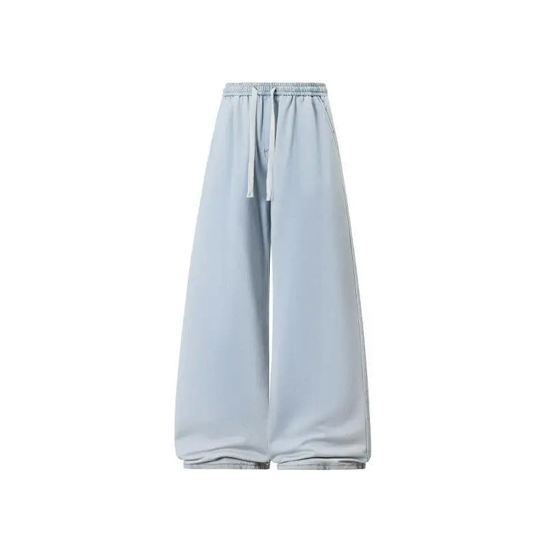 2025 New Elastic Waist Drawstring Solid Color Loose Fit Wide Leg Jeans Wide Leg Trendy High Waist Denim Pants for Men Women 3XL