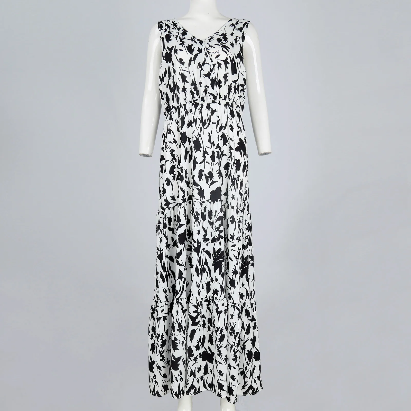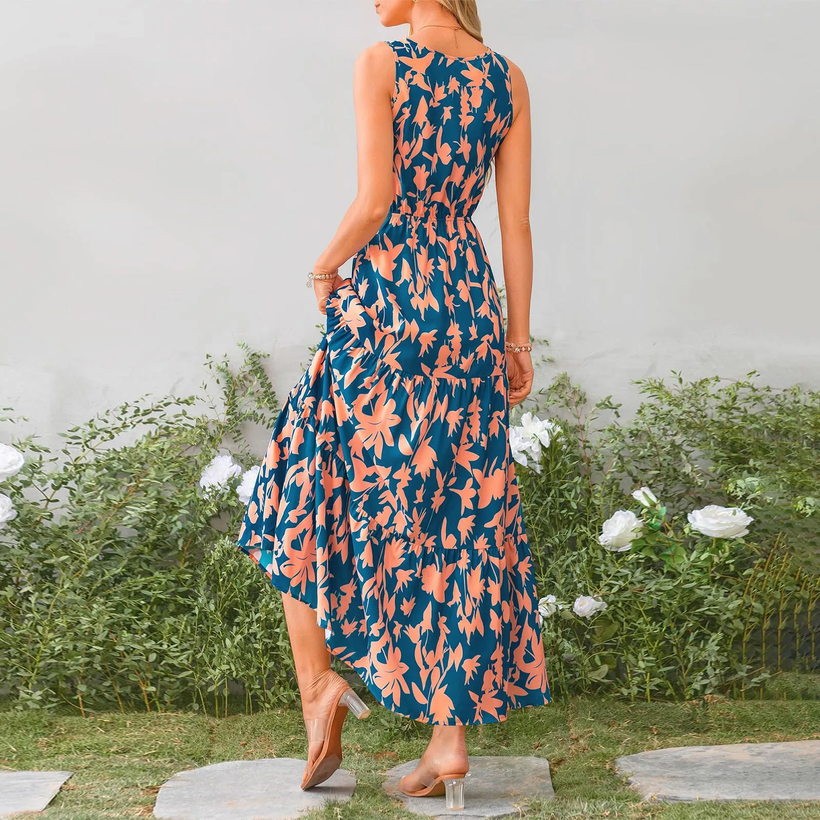 High Waist Flower Printed Dresses For Women Summer Casual Loose And Comfortable Beach Style Sleeveless V-neck Long Dresses