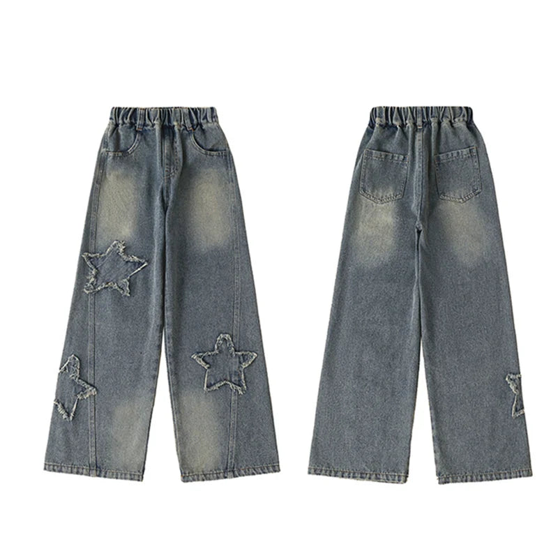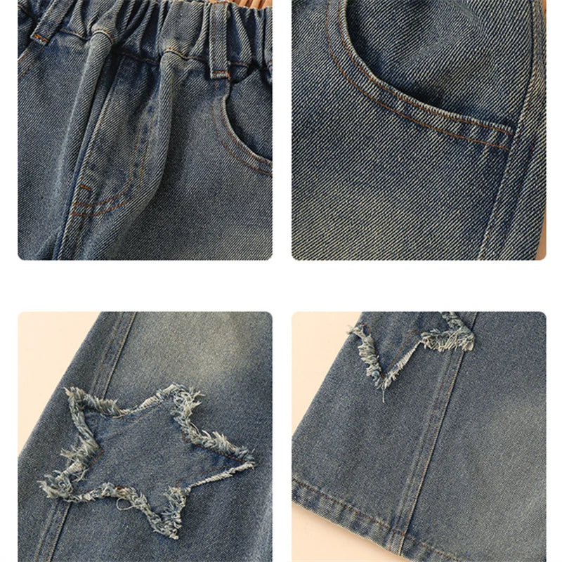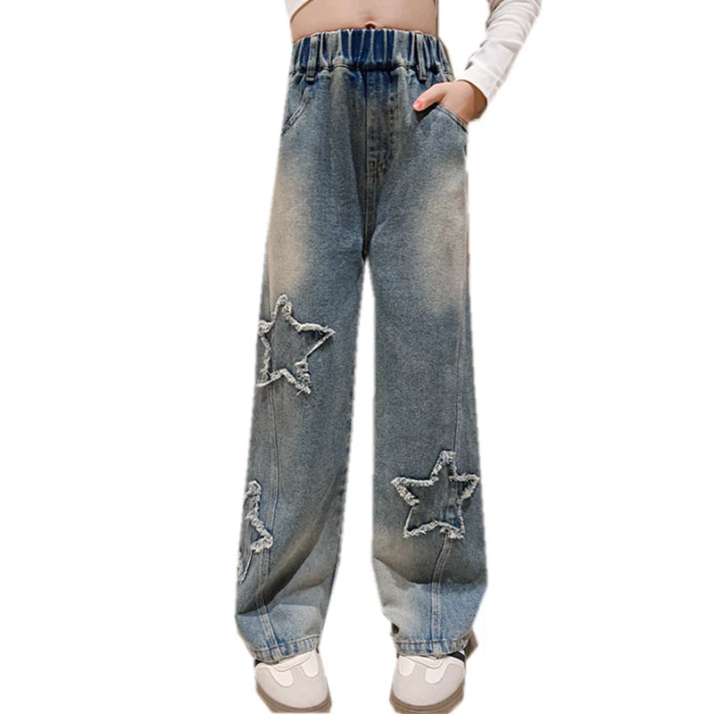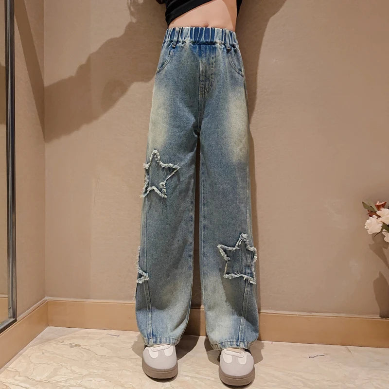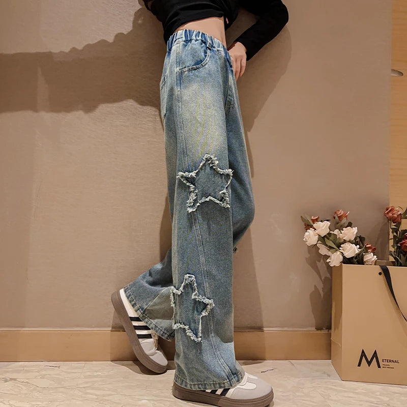 High Waist Jeans Girl Straight Loose Wide-leg Pants Spring and Autumn Korean Vintage Jeans Fashion Kids Denim Trousers For Teens