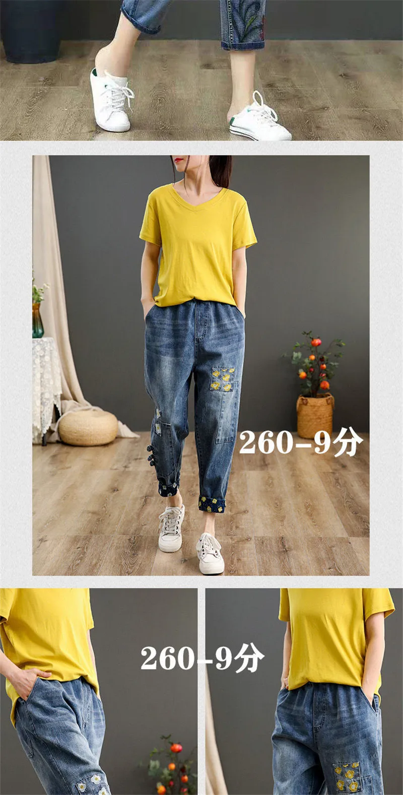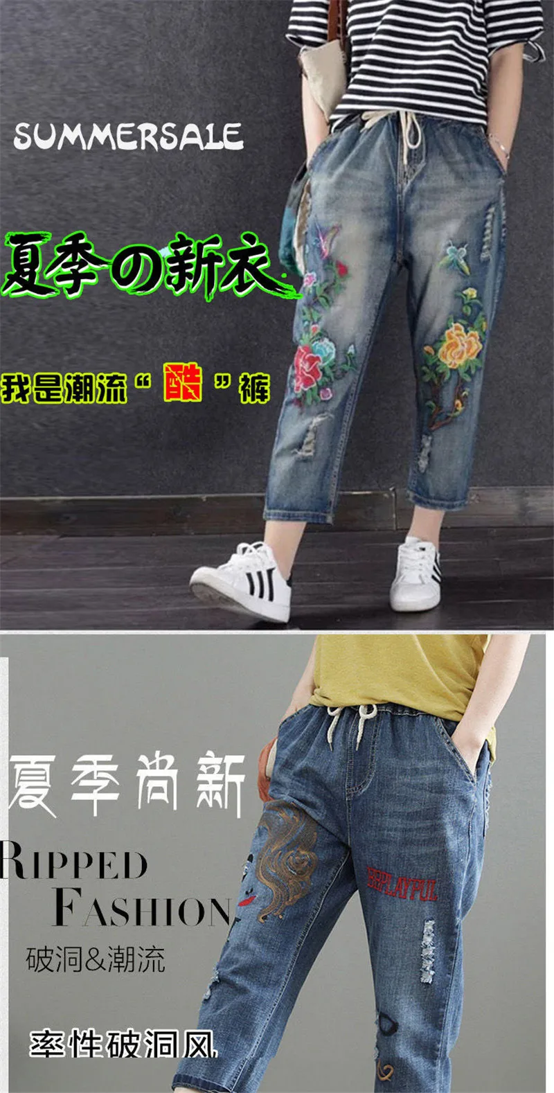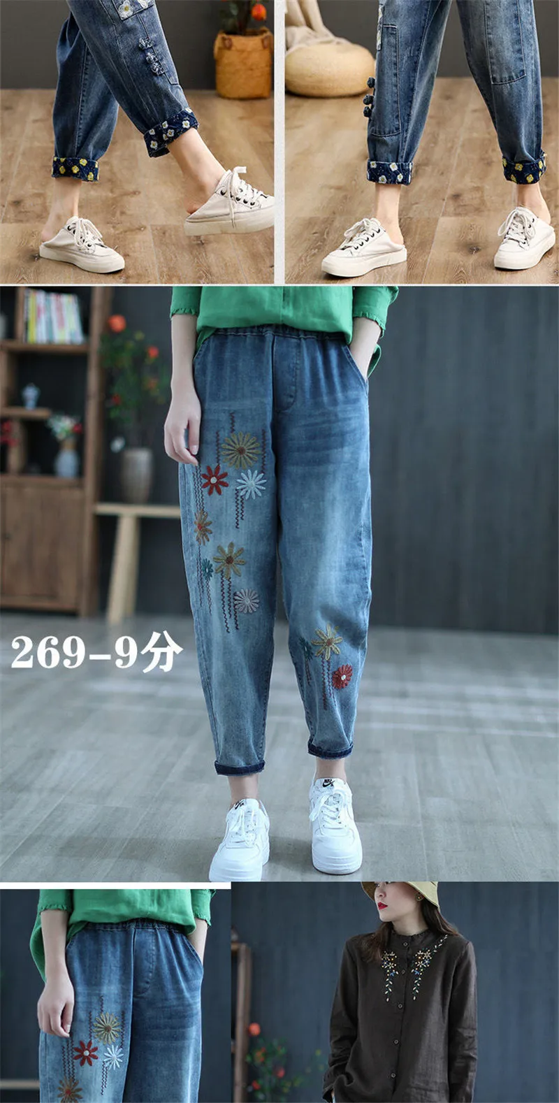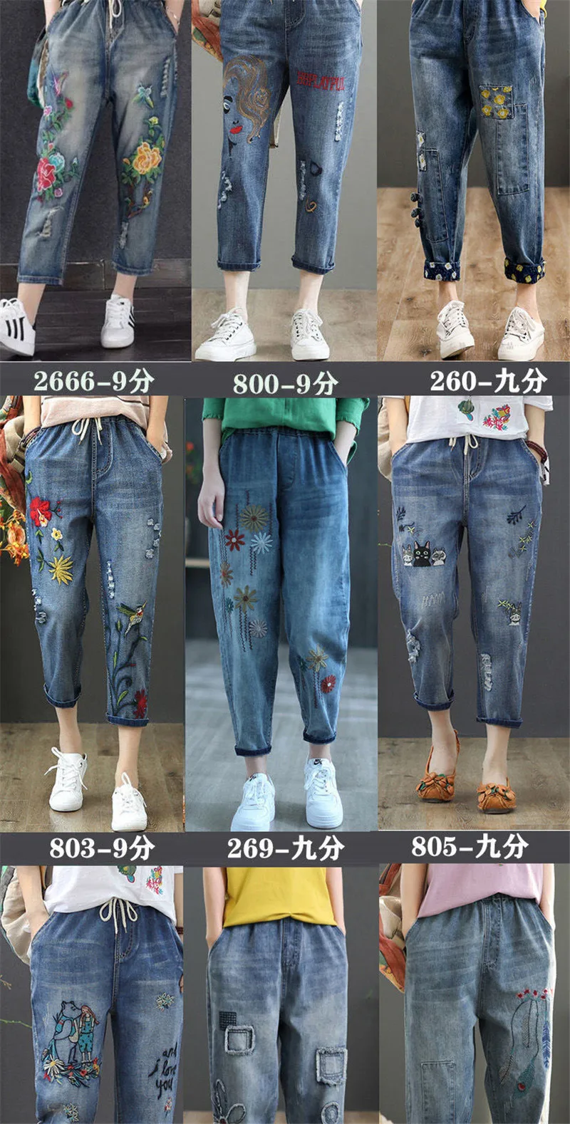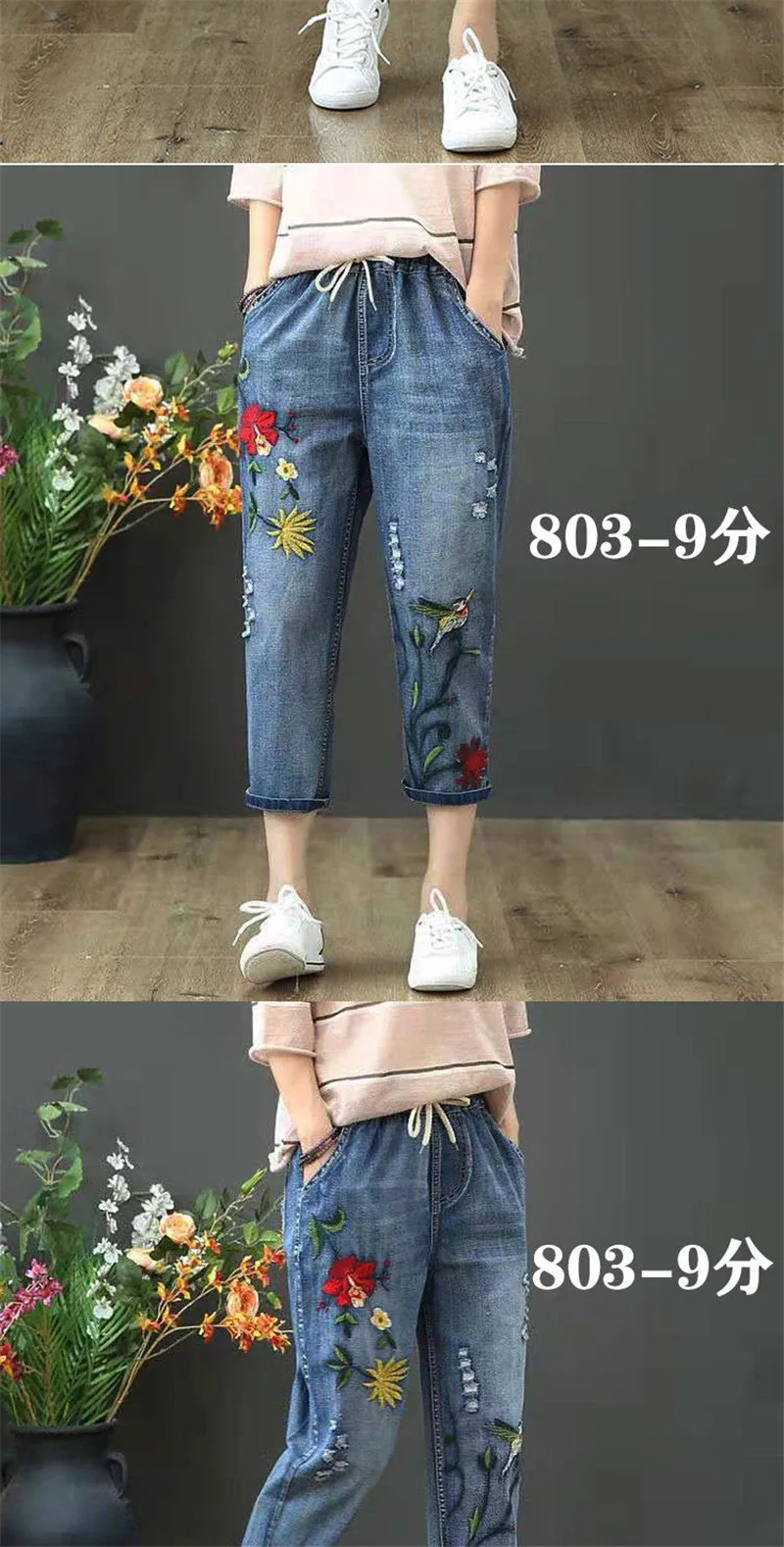 Jeans High Waist Women Retro Straight Trousers For Female Ankle Length Pants Elastic Waist Harem Pant Hole Embroidered Jeans
