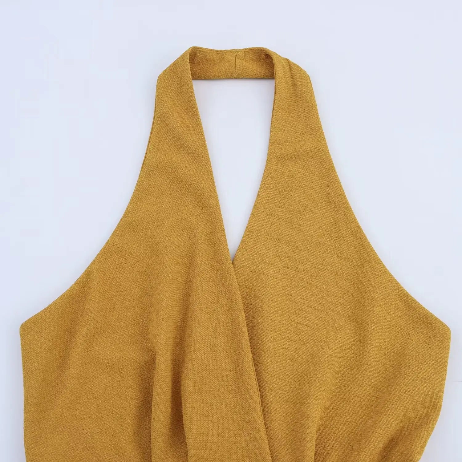Slimming Waistline Empire Waist Dress Sexy Backless Neck Hanging Long Skirt Fashionable V-neck Sleeveless Ankle-length Dress