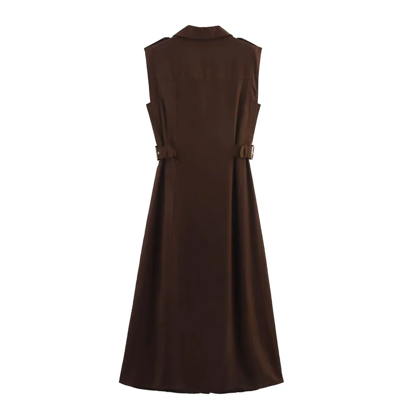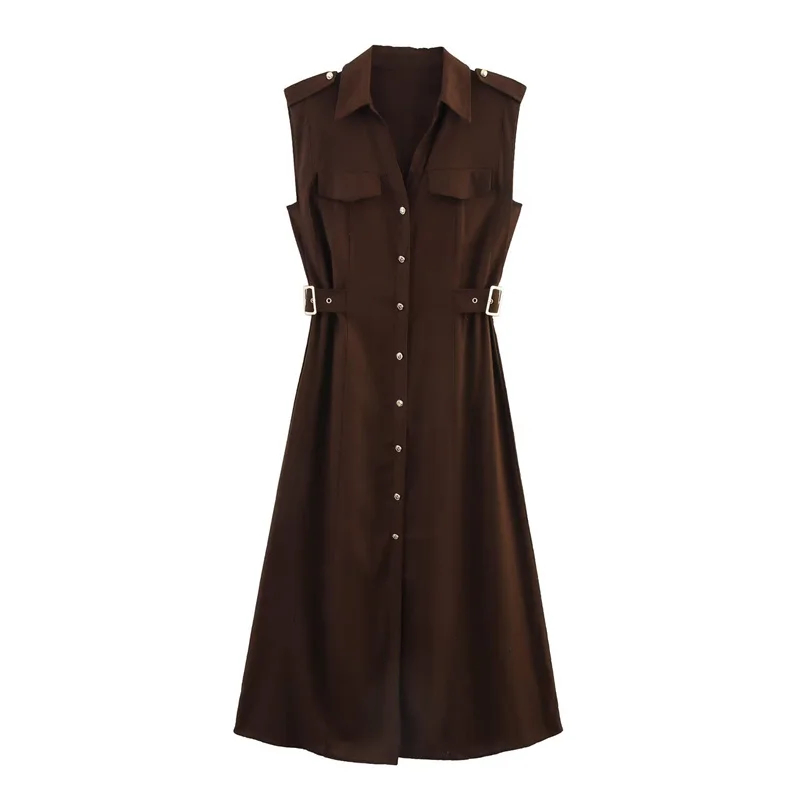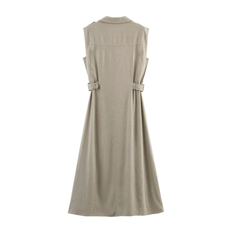Women's Dresses New Summer 2025 Sleeveless Midi Dress Waist Nippling Waist Design Large A Skirt Casual Fashion High-end personal