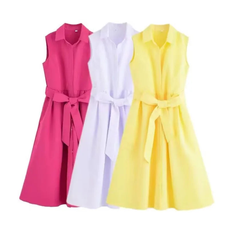 Women's waist belt shirt dress autumn lapel women's dress button up long skirt casual ruffled women's party dress